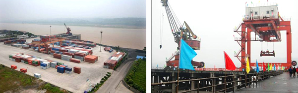 江海联运:集装箱通过长江码头泸州、重庆江运运输至上海港后,发往至世界各地。